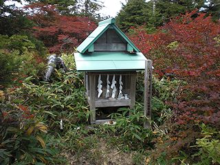 | 富士社や熊野社等があります。少し下ってさらに進むと山頂トイレがあります。100円。 | |