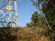 | 鉄塔の東の赤テープからヤブに入ります。(西側の立派な道と間違えた) |