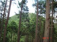 | 樹間から山頂。最後の急坂も測量の為の伐採?でわりと歩きやすいです |