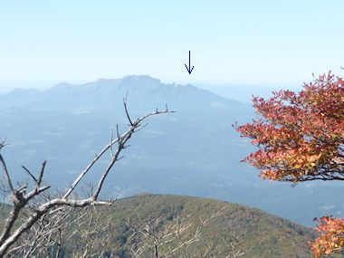 | 右が往生岳、左が阿蘇五岳の杵島岳。 | こちらは阿蘇五岳の烏帽子岳。 |
