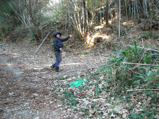 | 鉄塔の下から続く『小佐井分岐線』の点検路を進みます。 | 1分で左に取り付きます。テープが有ります。 |