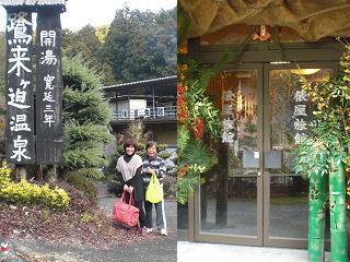 | 石柱から4分で351mの山頂です。展望はありません。 | 温泉は『鷺来(ろく)ケ迫温泉 俵屋旅館』500円 |
