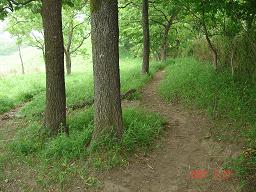 | その先の自衛隊入口(先の←)を入り立入禁 止の看板のところに駐車して遊歩道を歩きます どちらも先で合流します。 |