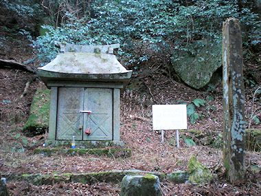 | 旧道は落葉の急傾斜でよく滑ります。 | 分岐から23分でお地蔵様や水場がある広場。 |