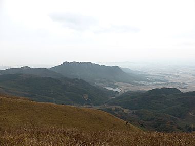 | あいにくの曇り空で遠くは霞んでいますが、付近の山々はよく見えます。 | |