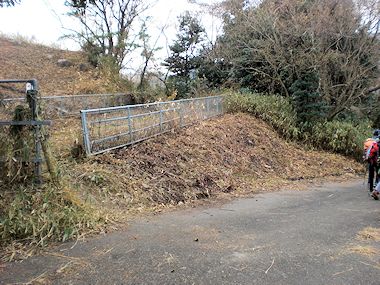 | 山道から未舗装林道にでて6分でゲートを越えます。 | 越えると前方に貫山登山道入口があります。 |
