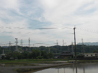 | 上がりつくと平坦になり、九電西大分変電所の鉄塔がたくさん現れます。変電所の手前を右折します。 | |