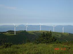 | もうススキの穂が開いています。ウインドテック 小国の風力発電所が近くに見えます。 |