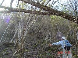 | 前回、取り付きの目印とした 8本リョウブの木が根こそぎ 倒れていました。 |