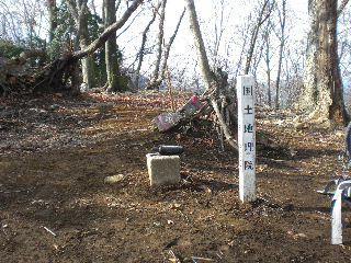 | 行ってみたら30秒で石塔がありました。縦走路に戻ります。すぐに元宮分岐です。今回はパスします。 | |